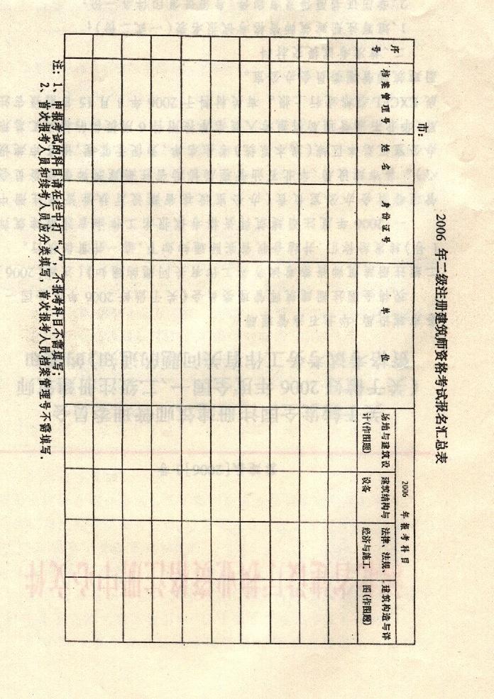 3、2006年二級注冊建筑師資格考試報名表