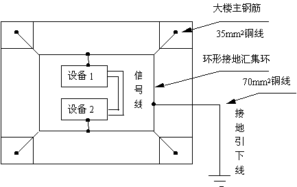 2.4.6 禁止在機(jī)房內(nèi)用細(xì)小的銅線將設(shè)備串聯(lián)接地,因為導(dǎo)線的分布電感和線阻,將使各接地點之間電位差增大。