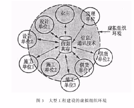 很容易理解,大型工程項目在不同的建設(shè)階段,需要有不同的參與方。例如,施工階段的參與方主要是各專業(yè)工種的分包單位,一旦某分包單位完成其施工任務(wù),它就可以脫離出去;一旦在施工過程中緊急需要熟悉某專業(yè)工種的施工單位,也同樣可以迅速加入。而所有這些參與方是以該工程項目為最終目的的,完工后整個組織也就隨之解散,若有新的工程任務(wù)又可以迅速重新組合。另外,與傳統(tǒng)基于指令的層級式組織環(huán)境不同的是所有項目參與方的地位是平等的,它們基于相互信任、共享信息和經(jīng)驗,努力完成其特定的工程任務(wù),共同促使項目的順利完成。當然,對于工程項目的虛擬組織環(huán)境而言,為了方便協(xié)調(diào),需要業(yè)主或項目管理方進行統(tǒng)一的管理,對特定的事件作出某些指令。