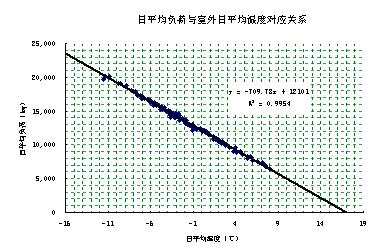 圖3.6 北京某小區(qū)日平均熱負荷與室外日平均溫度曲線