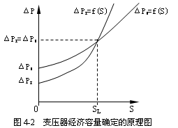 由圖4-2可知,臨界經濟容量的意義是:當按實際負載需用變壓器的容量S> SL時,則選用容量大的變壓器;反之,S<SL時,則選用容量小的變壓器。