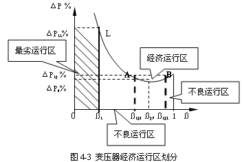 4. 3. 1. 3圖4-3中0~L是最劣運行區(qū),通稱過輕載運行區(qū)間,變壓器損失率很大,運行極不經濟。