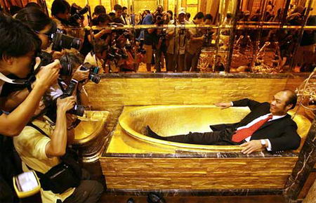 圖為用2噸黃金打造的豪華房間swiss horn的黃金浴盆。