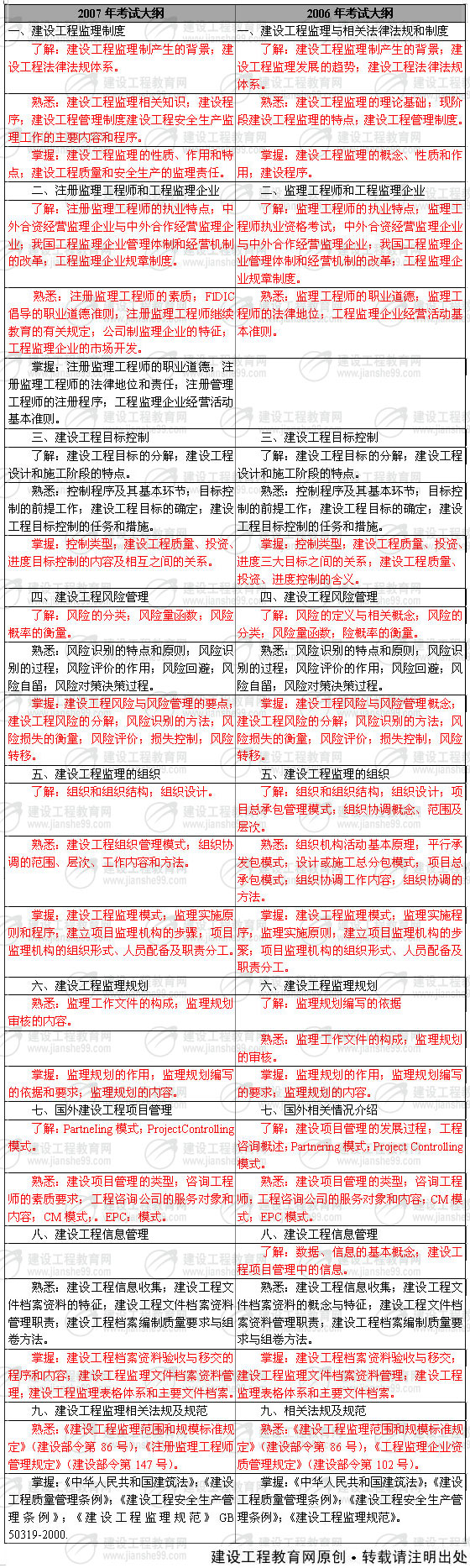 06、07監(jiān)理大綱對(duì)比表《基本理論與相關(guān)法規(guī)》