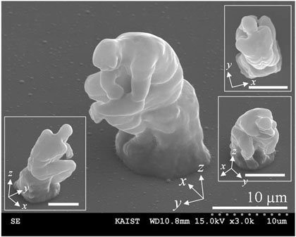 韓國科學家表示,此新技術將有助于開發(fā)新穎的生物傳感器和其它精密微型儀器。過去十多年,全世界的研究人員都在嘗試利用激光創(chuàng)作精微三維作品。起初,他們利用一種碰到某種頻率的光就變硬的樹脂進行嘗試。通過多個激光束,研究人員讓雕塑作品栩栩如生起來,甚至不到可見光波長大的點點細節(jié)也能充分表現(xiàn)出來。