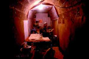 洞口靠里的陰暗處,一臺29英寸的電視機(jī)正放在石板上不停地閃著。在菜園壩建興坡一個2000平方米的防空洞內(nèi),有人竟然為了在春運(yùn)期間掙取旅客的食宿費(fèi),私自將封閉防空洞的洞口挖開,在里面搭起電源、電燈,再用木板隔出房間開起了所謂的“防空旅館”。