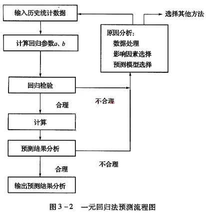 回歸分析法是分析相關(guān)因素相互關(guān)系的一種數(shù)理統(tǒng)計(jì)方法,通過(guò)建立一個(gè)或一組自變量與相關(guān)隨機(jī)變量的回歸分析模型,來(lái)預(yù)測(cè)相關(guān)隨機(jī)變量的未來(lái)值。,回歸分析法按分析中自變量的個(gè)數(shù)分為一元回歸與多元回歸;按自變量與因變量的關(guān)系分為線性回歸與非線性回歸。不論是一元回歸模型還是多元回歸模型,預(yù)測(cè)模型的建立要經(jīng)過(guò)嚴(yán)格的統(tǒng)計(jì)檢驗(yàn),否則模型不能成立。