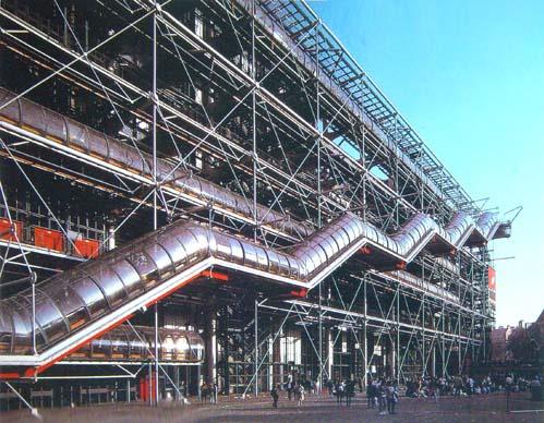 1969年時,法國總統(tǒng)喬治·蓬皮杜(Georges Pompidou)為紀念帶領(lǐng)法國于第二次世界大戰(zhàn)時擊退希特勒的戴高樂總統(tǒng),于是倡議興建一座現(xiàn)代藝術(shù)館。經(jīng)過國際競圖,從600多個參與競圖的團隊選出一個做為興建的建筑造形風格。這個獲選團隊的設計者為 Renzo Piano、Richard Rogers 與 Gianfranco Franchini.