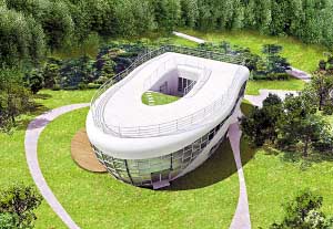 據(jù)新華社電 韓國(guó)議員沈在德斥資160萬(wàn)美元修建的一棟造型如馬桶的房屋(見(jiàn)上圖)于11日啟用。這是世界上唯一一棟造型如馬桶的房屋。