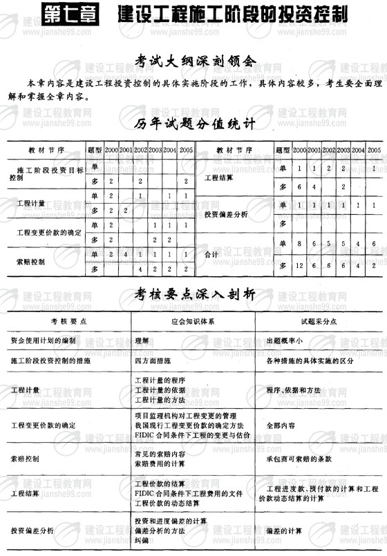 監(jiān)理工程師《投資控制》第七章考情分析