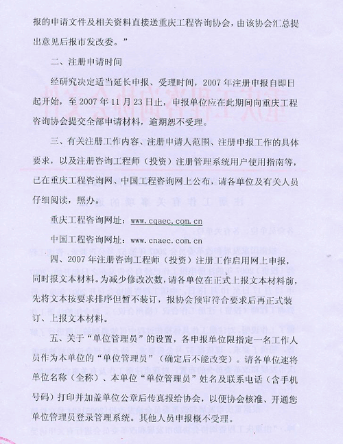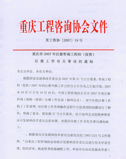[重慶]2007年注冊(cè)咨詢師注冊(cè)工作的有關(guān)事項(xiàng)通知