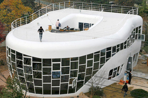 韓國水源市前市長沈載德花巨資精心建造了一座外形酷似馬桶的巨宅,這座“馬桶樓”將于11月11日舉行竣工典禮,目前,這座“別有風(fēng)味”的工程已經(jīng)到了收尾階段。