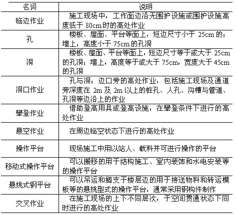 第1.0.2條 本規(guī)范適用于工業(yè)與民用房屋建筑及一般構(gòu)筑物施工時(shí),高處作業(yè)中臨邊、洞口、攀登、懸空、操作平臺(tái)及交叉等項(xiàng)作業(yè)。