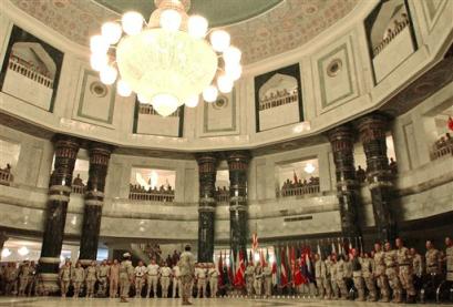 美軍士兵在美國(guó)駐伊拉克大使館內(nèi)。
