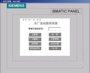 1.啟動(dòng)畫面:見下圖,左上角為時(shí)間顯示,該畫面一共有八個(gè)按鈕和一個(gè)輸入框,該輸入框用于輸入管理員密碼。八個(gè)按鈕中除了“登陸”和“注銷”外每一個(gè)按鈕分別對(duì)應(yīng)一個(gè)子畫面。