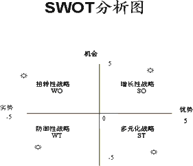SWOT分析圖綜合分析及相應戰(zhàn)略增長性戰(zhàn)略、多元化戰(zhàn)略、扭轉(zhuǎn)性戰(zhàn)略、防御性戰(zhàn)略。