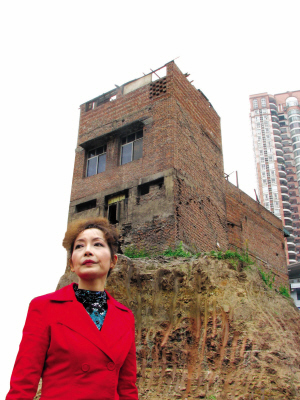 夫婦倆當(dāng)天還在樓頂上升起了國(guó)旗,以表決心。這幢豎立在10米多深的大坑基地上、很是突兀的兩層小樓房,在法院作出的3月22日起即可強(qiáng)制拆遷的裁定面前,今天是否真的就要倒掉?