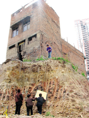 今年3月初,網(wǎng)上開(kāi)始流傳一個(gè)帖子,題目是《史上最牛的釘子戶》,內(nèi)容是一張圖片:一個(gè)被挖成10米深大坑的樓盤(pán)地基正中央,孤零零地立著一棟二層小樓,猶如大海中的一葉孤舟。