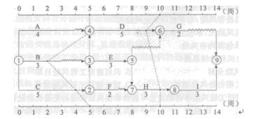 解題要點(diǎn):A項(xiàng):B工作第五周末檢查時(shí)尚有總時(shí)差為:(LFB-5)-1=-1,所以影響工期1周;B項(xiàng):C工作是關(guān)鍵工作IC項(xiàng):工作C、E、H為前后的關(guān)鍵工作;D項(xiàng):由于C關(guān)鍵工作偏差拖后一周,緊后工作D將在第7周末開(kāi)始;E項(xiàng):工作H正常,工作D落后1周小于總時(shí)差2,不會(huì)影響工期。