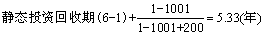 | 累計凈現(xiàn)金流量 | -1000 | -900 | -760 | -580 | -360 | -100 | 200 | 540 | 1340 | 1800 |