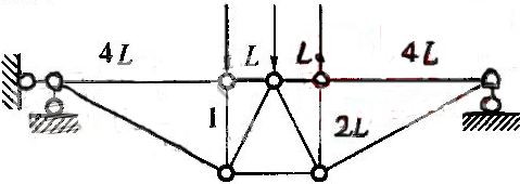 2.如圖為某桁架的計(jì)算簡圖,各桿件長度及節(jié)點(diǎn)力如圖中所示,其中桿1的內(nèi)力為()。