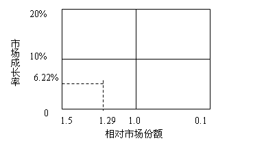 [問題]2.已知2001年A公司的市場(chǎng)銷售額為2400萬元,B公司的市場(chǎng)銷售量為2100萬元,取1999——2002年的平均市場(chǎng)增長率作為波士頓矩陣中的市場(chǎng)成長率,利用圖中給出的數(shù)據(jù)對(duì)A公司的該項(xiàng)業(yè)務(wù)進(jìn)行波士頓矩陣分析,并指出公司對(duì)該項(xiàng)業(yè)務(wù)應(yīng)當(dāng)采取的戰(zhàn)略措施。