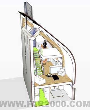 這座房屋還能夠根據(jù)氣候變化預(yù)測溫度的增長,通過一座風(fēng)斗來提供被動(dòng)的制冷和通風(fēng),并遮擋了陽臺和百葉窗,避免陽光直射和熱量吸收。