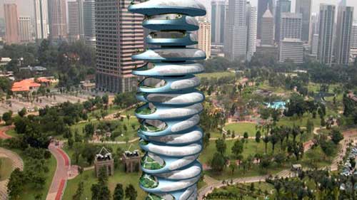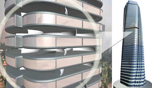 未來的摩天大樓是什么樣子的呢?也許你不會想到有一天你會站在一幢隨風起舞的大樓上。這種新型純綠色動態(tài)建筑,采用生態(tài)動力學供應電能。