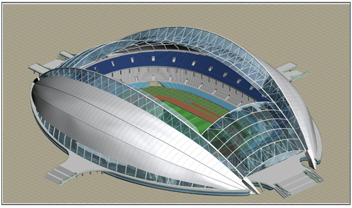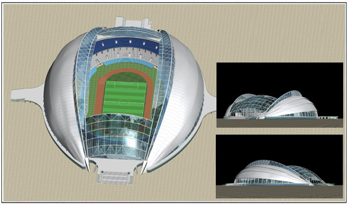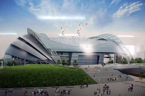 按照規(guī)劃,占地43萬平方米的奧體中心由“一場(chǎng)三館”組成。包括一座容納6萬人的體育場(chǎng)、一座容納1萬人的綜合體育館、一座容納4000人的游泳館和一座容納4000人的網(wǎng)球館,總建筑面積26萬平方米。
