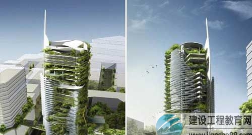 EDITT大樓全名“熱帶生態(tài)大樓”,由馬來西亞的建筑公司TR Hamzah & Yeang設(shè)計(jì)并建造。而此公司賦予EDITT的設(shè)計(jì)理念在于:持續(xù)的適應(yīng)性和生態(tài)環(huán)境的改善。大樓將安裝太陽能面板充分利用熱帶兇猛的陽光,就像植物把污水轉(zhuǎn)化成沼氣和肥料一樣。新加坡城可被稱為石屎(注1)森林,這樣一株“植物建筑”可促進(jìn)城區(qū)的生物品種數(shù)量的增加,并可以讓人們在日常生活中多些接觸大自然。