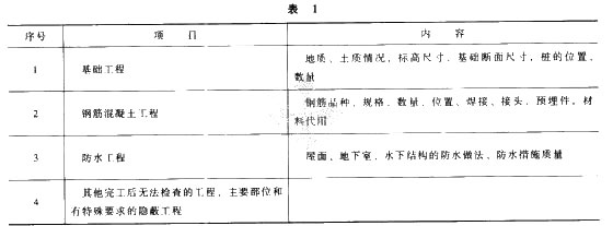 2)隱蔽工程驗(yàn)收的主要項(xiàng)目及內(nèi)容(表1):