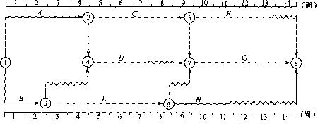 2.某工程雙代號時標網(wǎng)絡(luò)計劃如下圖所示。