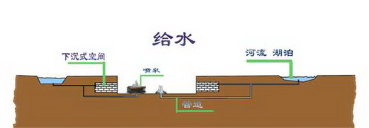 由于大多數(shù)河流、湖泊等淡水資源都在地面以上,所以這些水資源可以通過(guò)下沉式空間與地面河流、湖泊形成的為差自然的流入。這樣既省去了一些揚(yáng)水設(shè)備,也大大節(jié)約了能源,達(dá)到了資源與經(jīng)濟(jì)的雙贏。