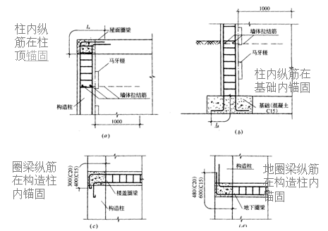 圈梁、構(gòu)造柱鋼筋錨固長(zhǎng)度應(yīng)按《建筑抗震結(jié)構(gòu)詳圖》GJBT—465,97G329