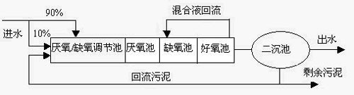 改良 A2/O 工藝綜合了A2/O 工藝和改良UCT的優(yōu)點,有著良好的生物脫氮除磷效果,脫氮能力高于 A2/O 工藝。改良A2/O 工藝處理流程簡圖如下: