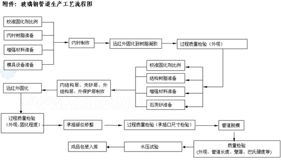 2. 玻璃鋼管道制作過程簡述(參見附件:玻璃鋼管道生產(chǎn)工藝流程圖)
