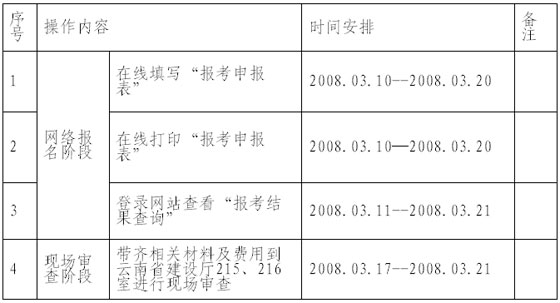 6、按“報(bào)考申報(bào)表”附注的要求,攜帶相關(guān)材料(均用A4紙)及報(bào)考費(fèi)交到各州、市建設(shè)行政主管部門;
