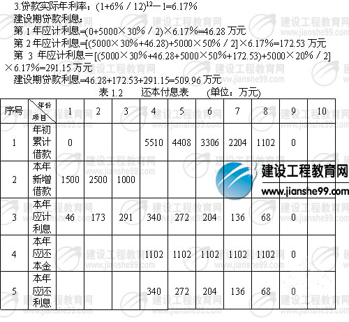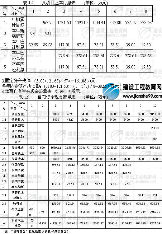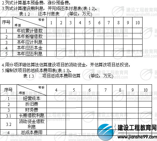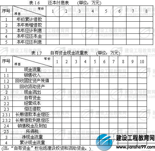 2.編制項(xiàng)目還本付息表(將計(jì)算結(jié)果填入表1.6中)。