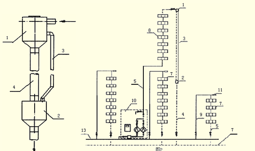 6 低區(qū)回水管; 7 低區(qū)散熱器; 8 高區(qū)散熱器; 9 低區(qū)供水管;
