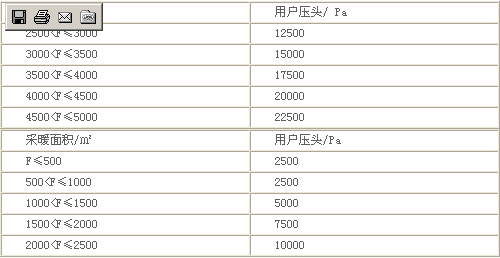 個別采暖面積大于5000㎡的,其用戶壓頭按以上表格類推。末端用戶的用戶壓頭按上表的1.5倍選取。