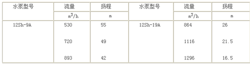 原12Sh-9A型160 KW的循環(huán)水泵流量、揚程均過大,應(yīng)換為一臺12Sh-19A型90 KW的循環(huán)水泵,原12Sh-9A型160 KW的循環(huán)水泵可作為備用泵。兩種型號的水泵參數(shù)如下: