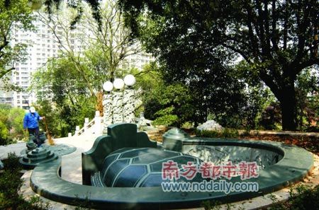 18日下午2時許,記者來到長沙華雅生態(tài)園,新建的5棟樓房南面,有一座標(biāo)為“怡情園”的小山林,里面綠蔭掩映,宇榭樓臺,山水相映!傲昴咕驮诶锩妗!睖(zhǔn)業(yè)主劉先生說:“這里環(huán)境不錯,但一想到以后自己住的樓房旁邊就是陵墓,心里就覺得別扭。”