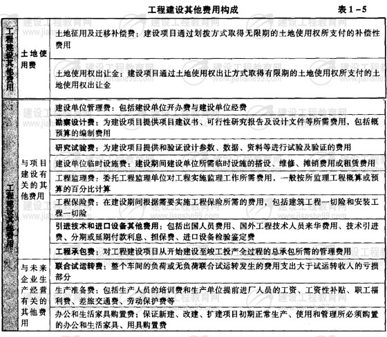 工程建設(shè)其他費用構(gòu)成(表1-5)