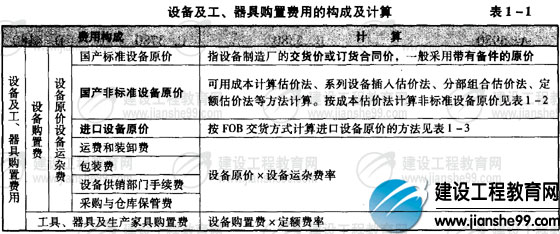 設(shè)備及工、器具購置費用的構(gòu)成及計算(表1-1)