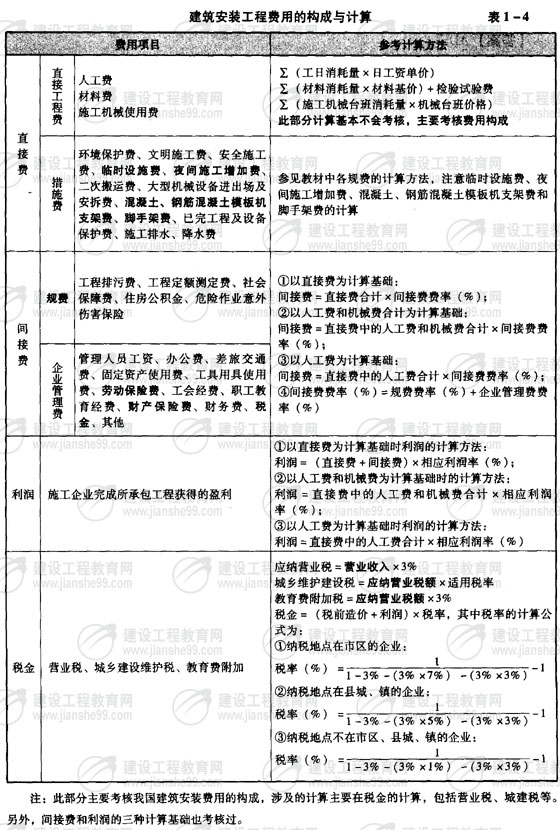 建筑安裝工程費用的構(gòu)成與計算(表1-4)