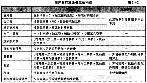 國產(chǎn)非標(biāo)準(zhǔn)設(shè)備原價構(gòu)成(表1-2)