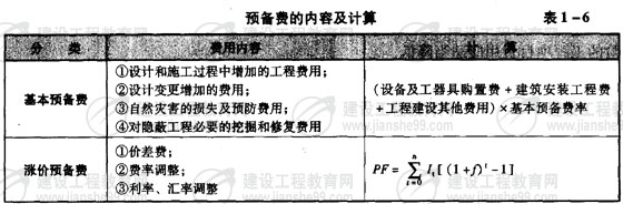 預(yù)備費內(nèi)容及計算(表1-6)