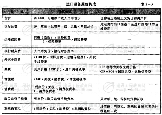 進(jìn)口設(shè)備原價構(gòu)成(表1-3)