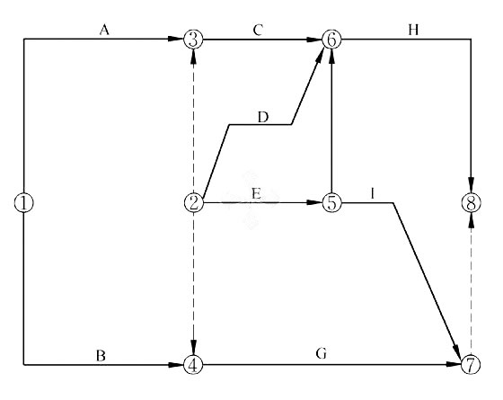 8、某分部工程雙代號網(wǎng)絡(luò)圖如下圖所示,其作圖錯誤表現(xiàn)為( )。