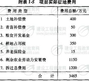 該項(xiàng)目共占用小麥農(nóng)田500畝,1995年小麥單位面積經(jīng)濟(jì)凈效益為每年600元/畝,已知該片農(nóng)田還可以種植兩茬蔬菜,其1995年單位面積經(jīng)濟(jì)凈效益為400元/畝·茬,而且12年內(nèi)該片農(nóng)田的年凈效益增長率為g=3%,項(xiàng)目實(shí)際征地費(fèi)用如下(見附表1-5)。
